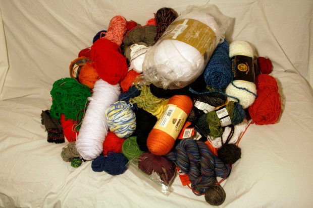 My stash includes yarns from Bernat, Berroco, Brooklyn Tweed, Caron, Classic Elite, Debbie Bliss, Heather Prime Alpaca, Jamieson’s, Jojoland, Lang, Lily, Lion, Loops & Threads, Lorna’s Laces, tons of Malabrigo, Mirasol, Misti Alpaca, Nashua Handknits, Noro, Plymouth, Red Heart, Twize, and Universal. It includes many full skeins/balls of yarn as well as leftovers from past projects (even some really tiny bits!).