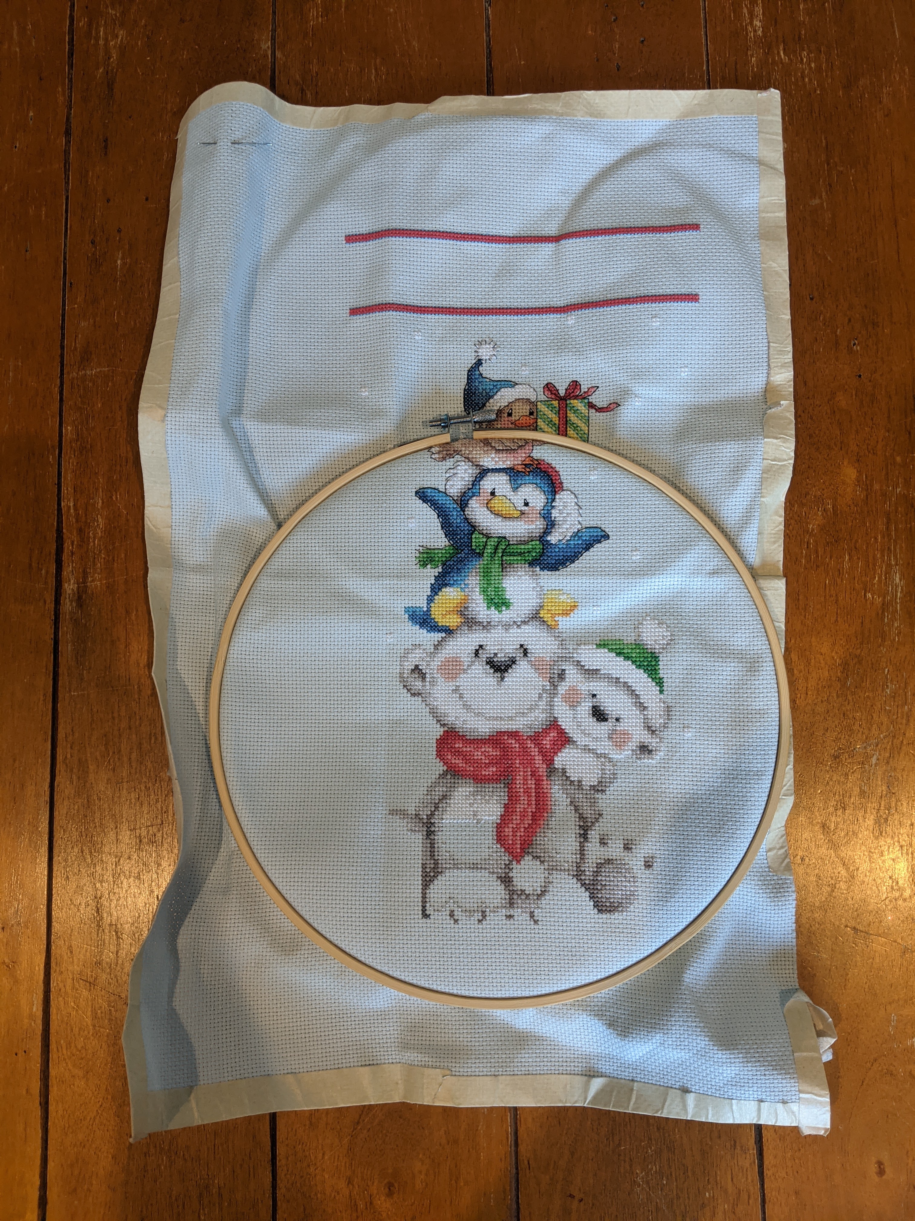 This stocking is for the new baby, and it comes from a Dimensions cross-stitch kit. I started working on it in July and I’m about 70% done. I’m hoping to finish before the baby comes in November (except for the name, since we haven’t chosen yet)! It would be fun to have everyone’s stockings up for Christmas this year.